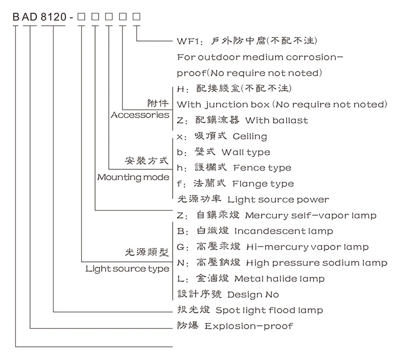 1. 按照型號含義中的規則逐條進行選擇,并在型號含義后增加防爆標志。