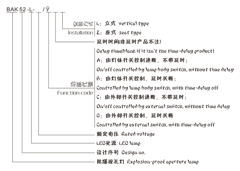 5. 開(kāi)關(guān)內(nèi)置,用戶不需另配專用防爆照明開(kāi)關(guān)。