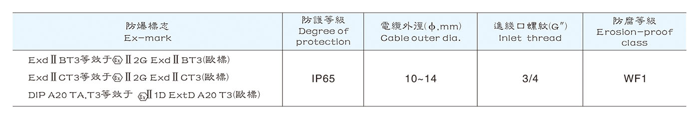 1. 按照型號含義中的規則逐條進行選擇,并在型號含義后增加防爆標志。