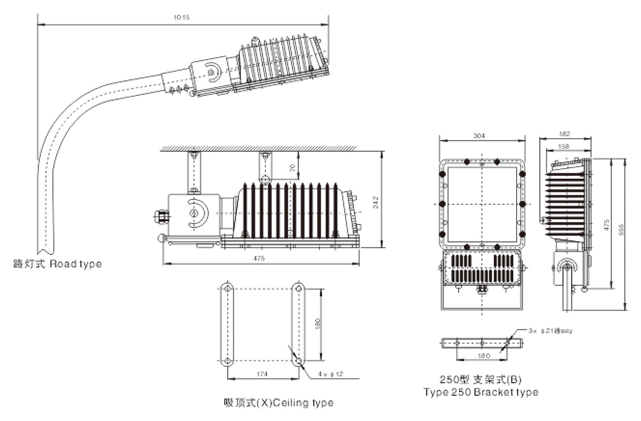 4. 燈具與鎮流器附件為一體式設計,便安裝維修。有較強的防水性能,可用于石油平臺及油輪艦艇等惡劣環境場所;