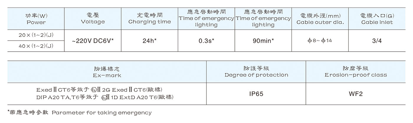 3. 內裝電子鎮流器為我公司特制的防爆鎮流器,具有短路和開路保護性能,針對燈管的老化效應和漏氣現象預防電路,使燈具能正常工作,且高效節能COSφ≥0.98,具有寬電壓輸入,在電