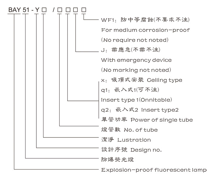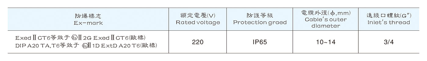 1. 按照型號(hào)含義中的規(guī)則逐條進(jìn)行選擇,并在型號(hào)含義后增加防爆標(biāo)志。