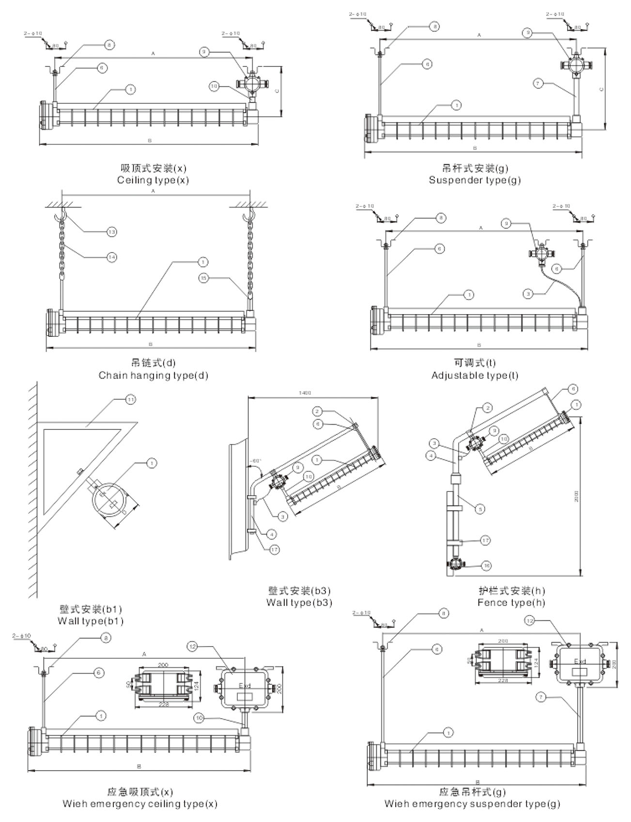 2. 采用隔爆結(jié)構(gòu),快速更換燈管,燈具可根據(jù)要求配成可調(diào)節(jié)方式,在更換燈管時,可以將燈具一端拉出;