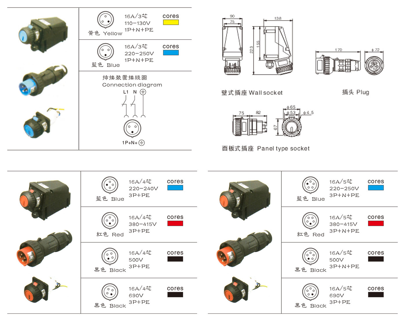 3. 插頭接觸性能可靠,使用壽命長,插座內的插套有一個彈性的百葉式彈簧套(材質為鈹表銅,經熱處理),使插頭既有自我清潔的特性,又保證了小的接觸電阻和低溫升,同時也將所要的插拔力降到了最低,百葉式彈簧套的設計保證了插頭和插座功能的正常發揮和永久的自清潔效果,解決了插接裝置在使用中受周圍環境的影響(如溫度,塵埃等)。確保了插接裝置的電傳輸性能;