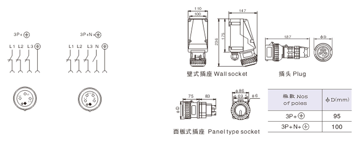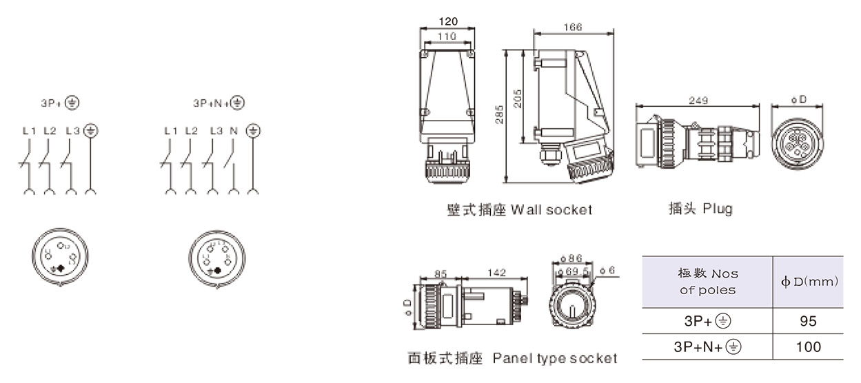 2. 具有可靠的聯鎖功能,即只有插座腔內的開關分斷后插頭才能拔出,只有插頭插入腔內,開關才可閉合;
