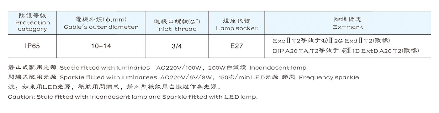 2. 鋼化玻璃燈罩、強度高、耐沖擊,顏色有紅、黃、藍等供選擇;