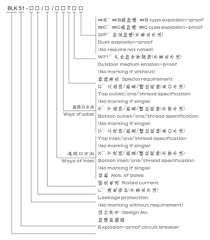 1. 按照型號(hào)含義中的規(guī)則逐條進(jìn)行選擇,并在型號(hào)含義后增加防爆標(biāo)志。
