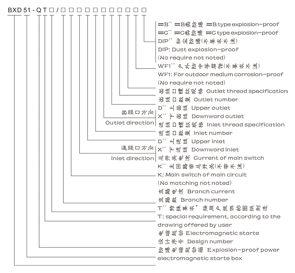1. 按照型號含義中的規則逐條進行選擇,并在型號含義后增加防爆標志。