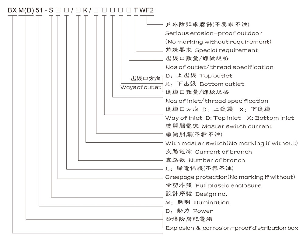 1. 按照型號含義中的規(guī)則逐條進(jìn)行選擇,并在型號含義后增加防爆標(biāo)志。