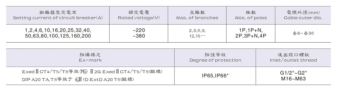 2. 增安型外殼,內(nèi)裝斷路器(漏電)、防爆電動機(jī)保護(hù)開關(guān)、防爆電涌保護(hù)器、防爆隔離開關(guān)、防爆信號燈等各種元件;