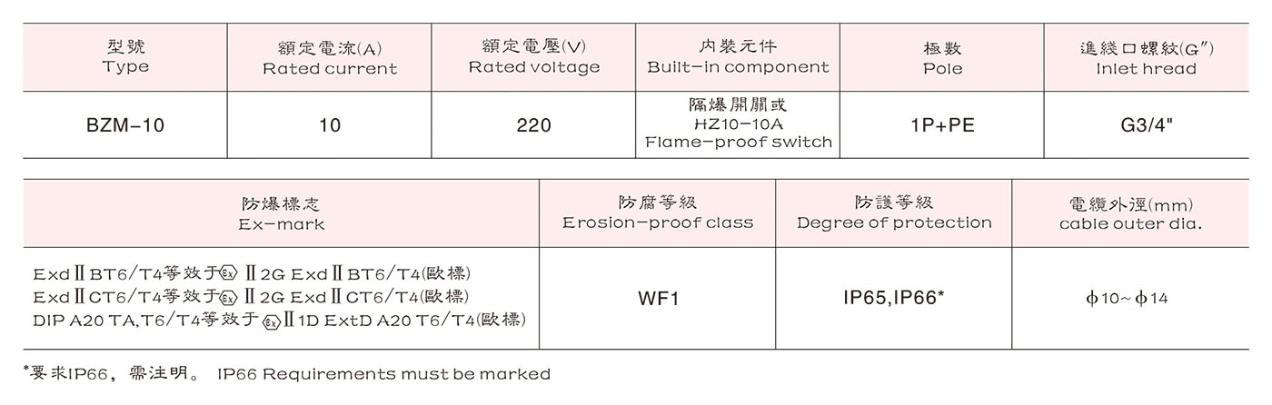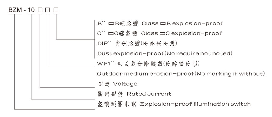2. ⅡB級內裝隔爆開關元件,ⅡC級內裝HZ10組合開關;